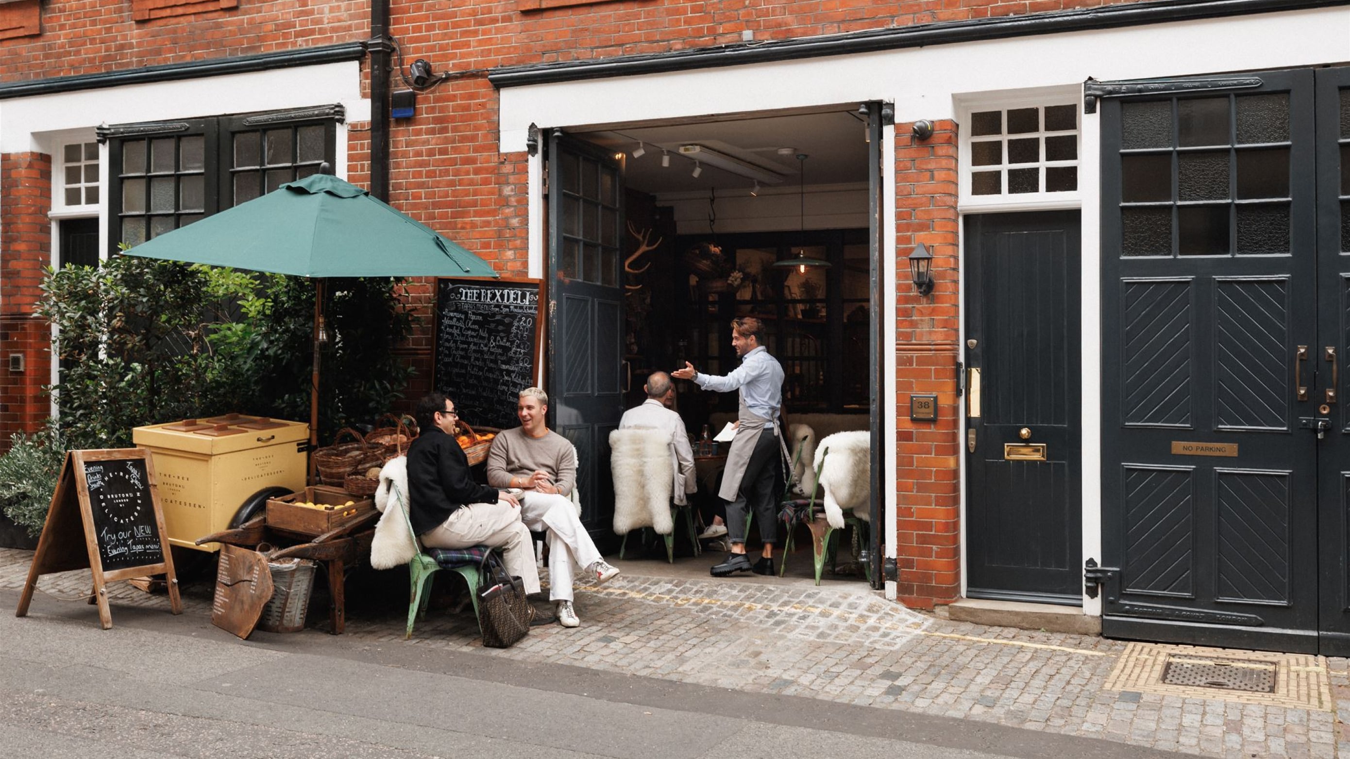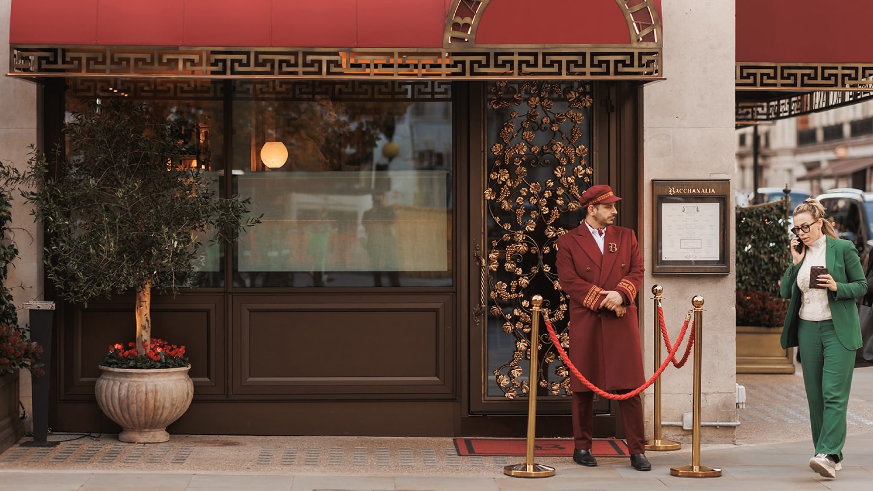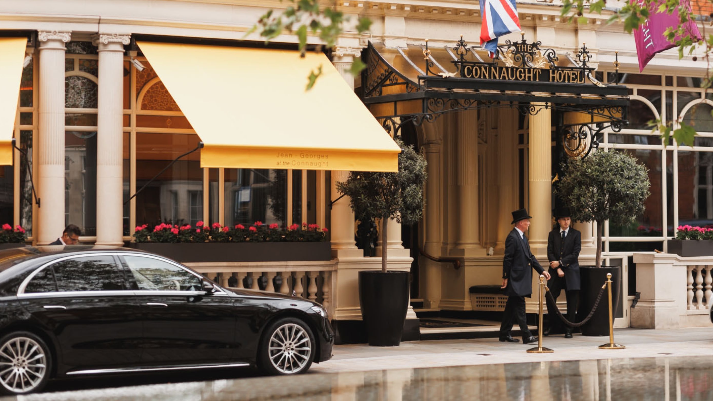 Grand entrance on Berkeley Square and discreet ancillary Hays Mews drop-off and parking.